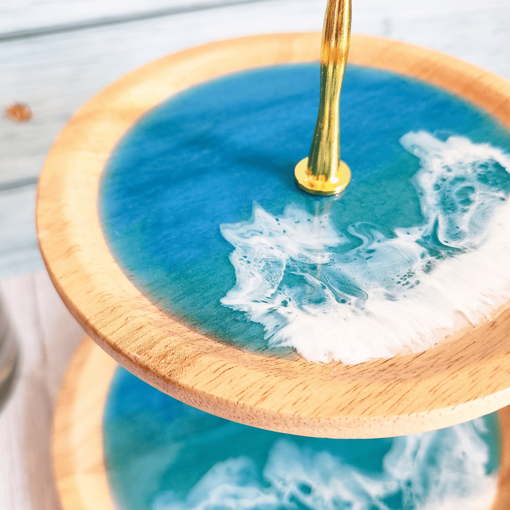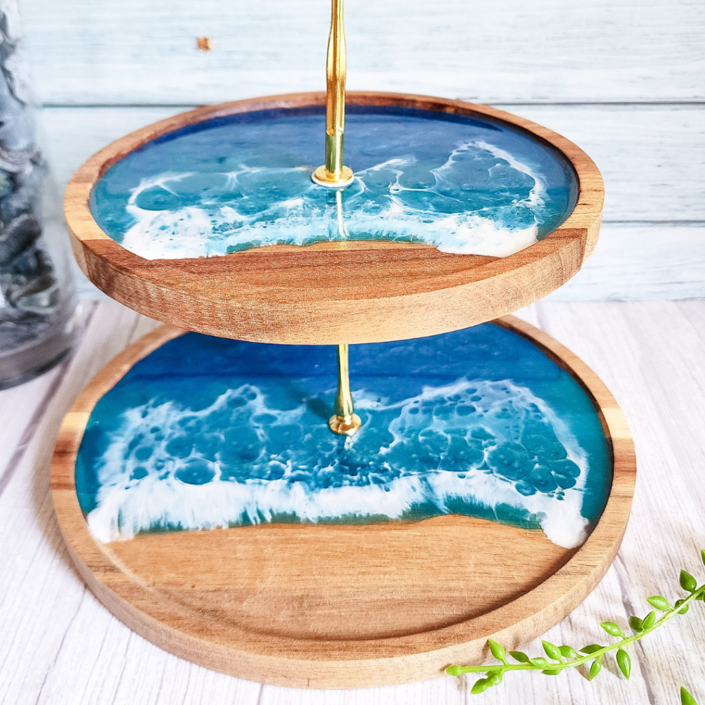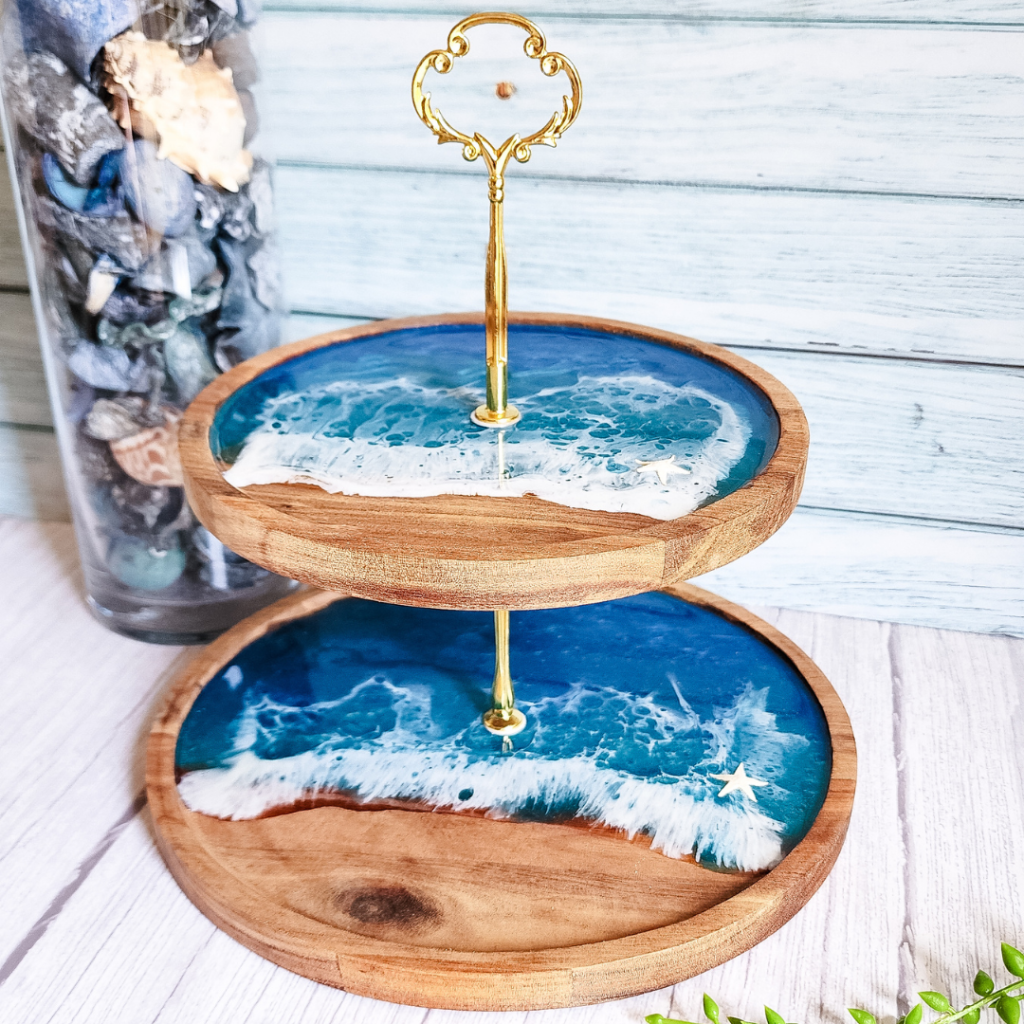 Get your cake on with this 3-tier stand! Perfect for parties or just everyday use, this resin set includes 4 coasters, making it a great housewarming gift for any cake-lover.