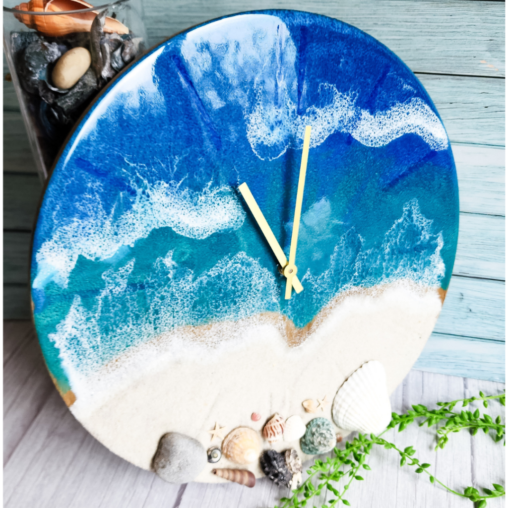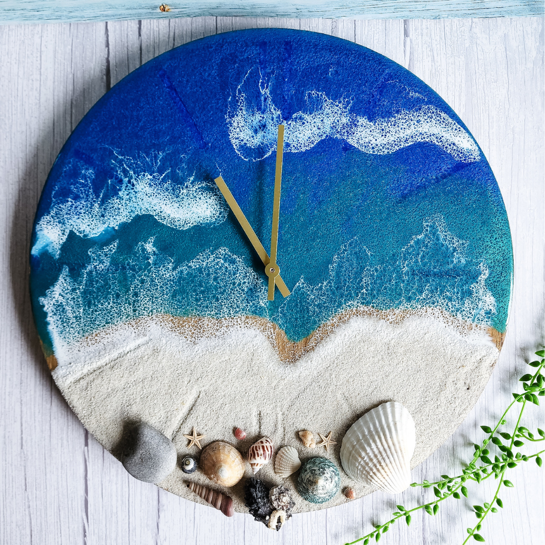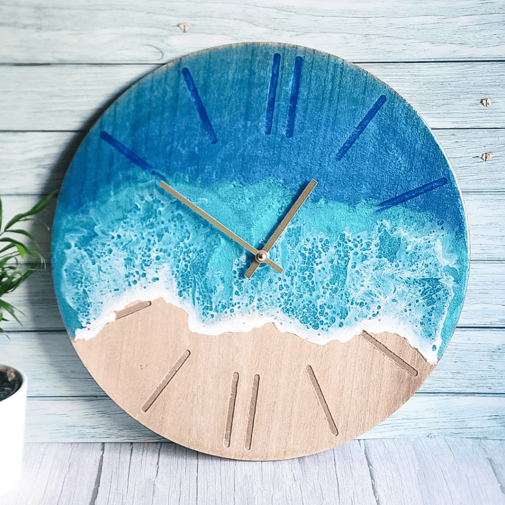 Add a touch of oceanic charm to your living space with this stunning handcrafted wall clock from Mermaid Resin. The clock features a glossy finish and a blue colour scheme that perfectly complements any room in your home. Measuring 40cm in length and width, this wall clock is made from a combination of wood and epoxy resin materials, making it a sturdy and durable addition to your home decor. This art deco style wall clock is designed with a silent/no ticking feature, making it perfect for any room in your home where noise may be a problem. Whether you’re looking to add a touch of elegance to your living room, bedroom or kitchen, this Mermaid Resin wall clock is the perfect choice.