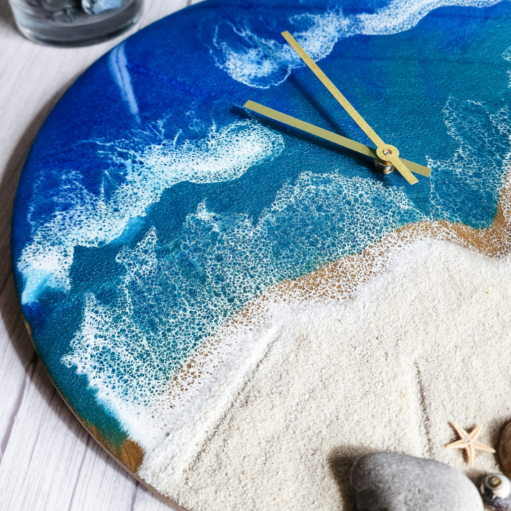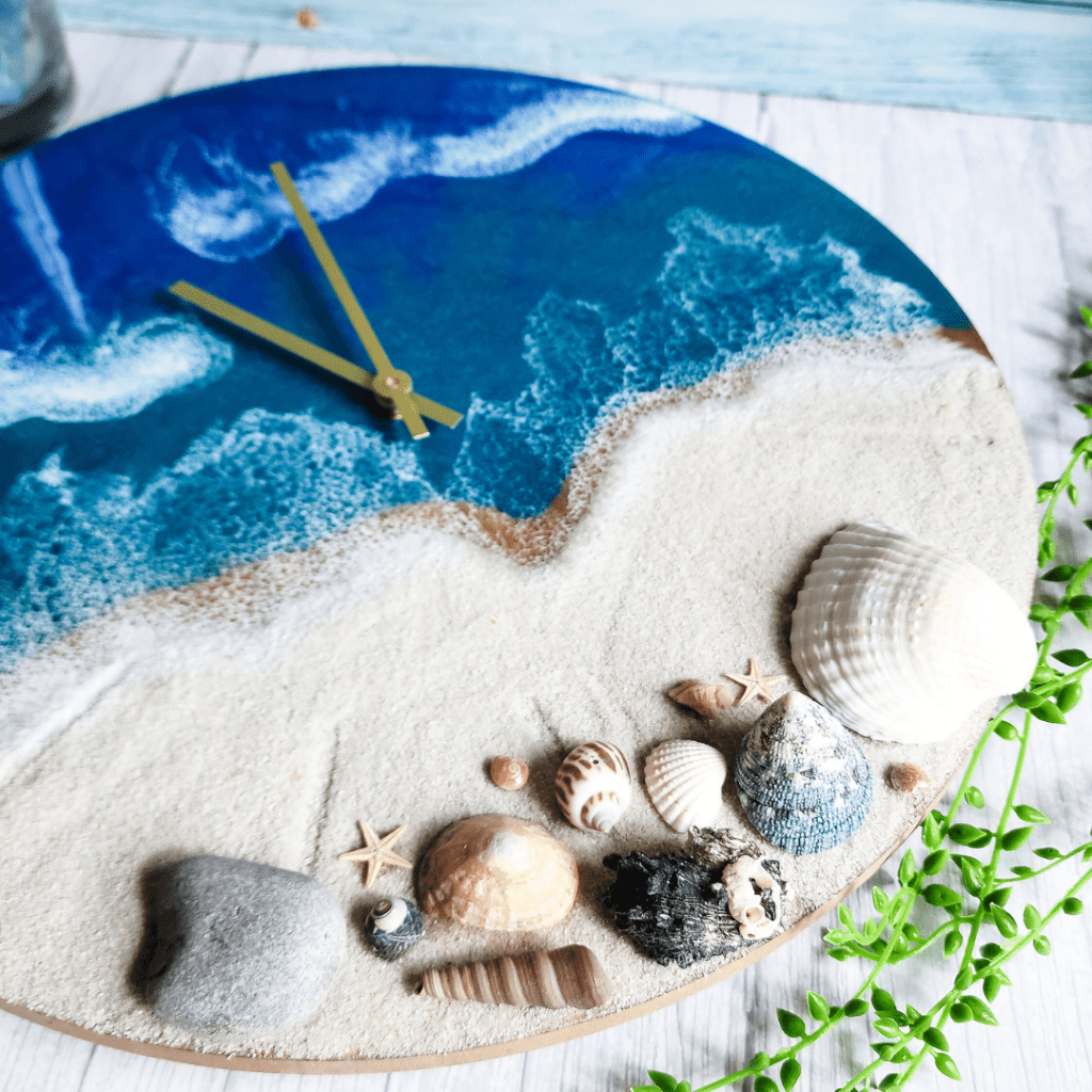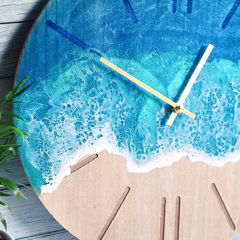 Add a touch of oceanic charm to your living space with this stunning handcrafted wall clock from Mermaid Resin. The clock features a glossy finish and a blue colour scheme that perfectly complements any room in your home. Measuring 40cm in length and width, this wall clock is made from a combination of wood and epoxy resin materials, making it a sturdy and durable addition to your home decor. This art deco style wall clock is designed with a silent/no ticking feature, making it perfect for any room in your home where noise may be a problem. Whether you’re looking to add a touch of elegance to your living room, bedroom or kitchen, this Mermaid Resin wall clock is the perfect choice.